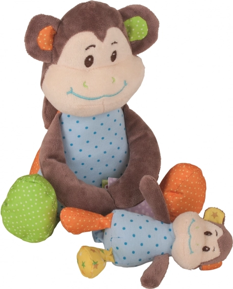 Ljubka plišasta opička mamica z odstranljivim mladičkom bo razveselila vsakega dojenčka. Je mehka, varna in ponuja grizalo ter ropotuljico za zabavo in razvoj kognitivnih funkcij. Pisana izvedba podpira čutno zaznavanje ter otrokom nudi tolažbo in prijateljstvo.