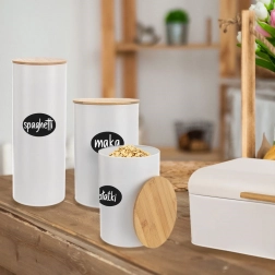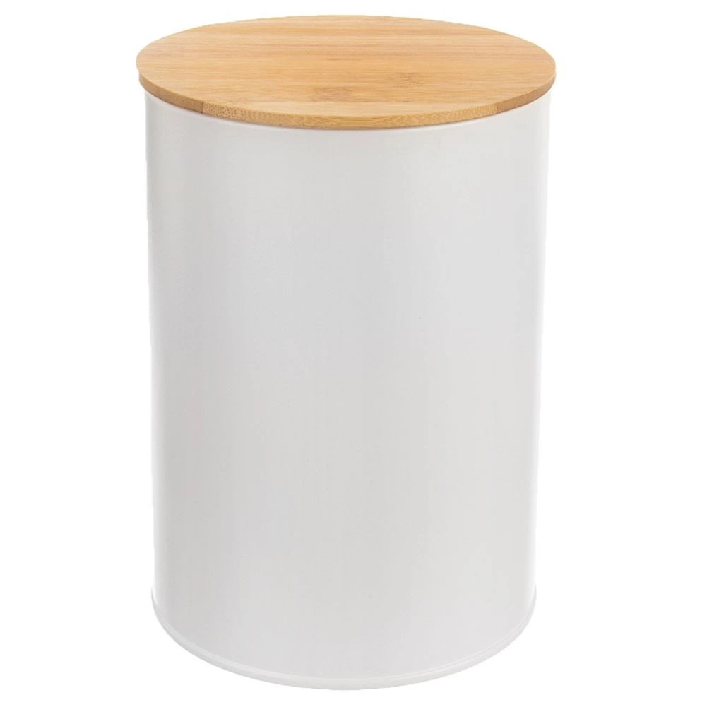 Ta praktična posoda je idealna za vsakodnevno shranjevanje živil, kot so kava, čaj, sladkor, testenine, oreški ali sušena zelišča. Kakovostna kovina v mat beli izgleda stilsko in je enostavna za vzdrževanje, naravni bambusen pokrov pa doda topel poudarek.