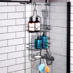 Ta viseča pršna polica je zasnovana za maksimalno udobje in red. Zahvaljujoč univerzalnemu obešanju jo preprosto namestite na pršno ročko, stekleno steno ali običajni kavelj – brez potrebe po vrtanju. Odprta žična konstrukcija omogoča hitro odtekanje vode in higiensko sušenje.
