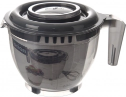 Praktična skleda s prostornino 2,5 l za udobno mešanje, stepanje in nalivanje. Ima dvodilni pokrov proti škropljenju, udoben ročaj, natančen izlivnik in vgrajen merilnik v ml in skodelicah. Izdelana iz odporne, za zdravje neškodljive plastike brez BPA, primerna za pomivalni stroj in mikrovalovko (brez pokrova), s stabilnimi nedrsečimi nogicami.