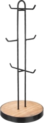 Elegantno kuhinjsko stojalo za skodelice z višino 40 cm prihrani prostor na pultu in ohranja red. Združuje črno kovinsko konstrukcijo s stabilnim lesenim podstavkom, ponuja 6 kljuk za pregledno obešanje in se zahvaljujoč praktičnemu ročaju zlahka prenaša. Idealno za moderne in klasične kuhinje v industrijskem slogu.