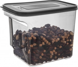 Ohranite red v kuhinji z univerzalno posodo za suha živila s prostornino 2,75 l. Prosojno ohišje v temno sivi barvi omogoča takojšen pregled vsebine brez odpiranja, trden pokrov zagotavlja odlično tesnjenje in zaščito pred vlago ter vonjavami. Praktičen ročaj olajša rokovanje in jemanje iz omarice.