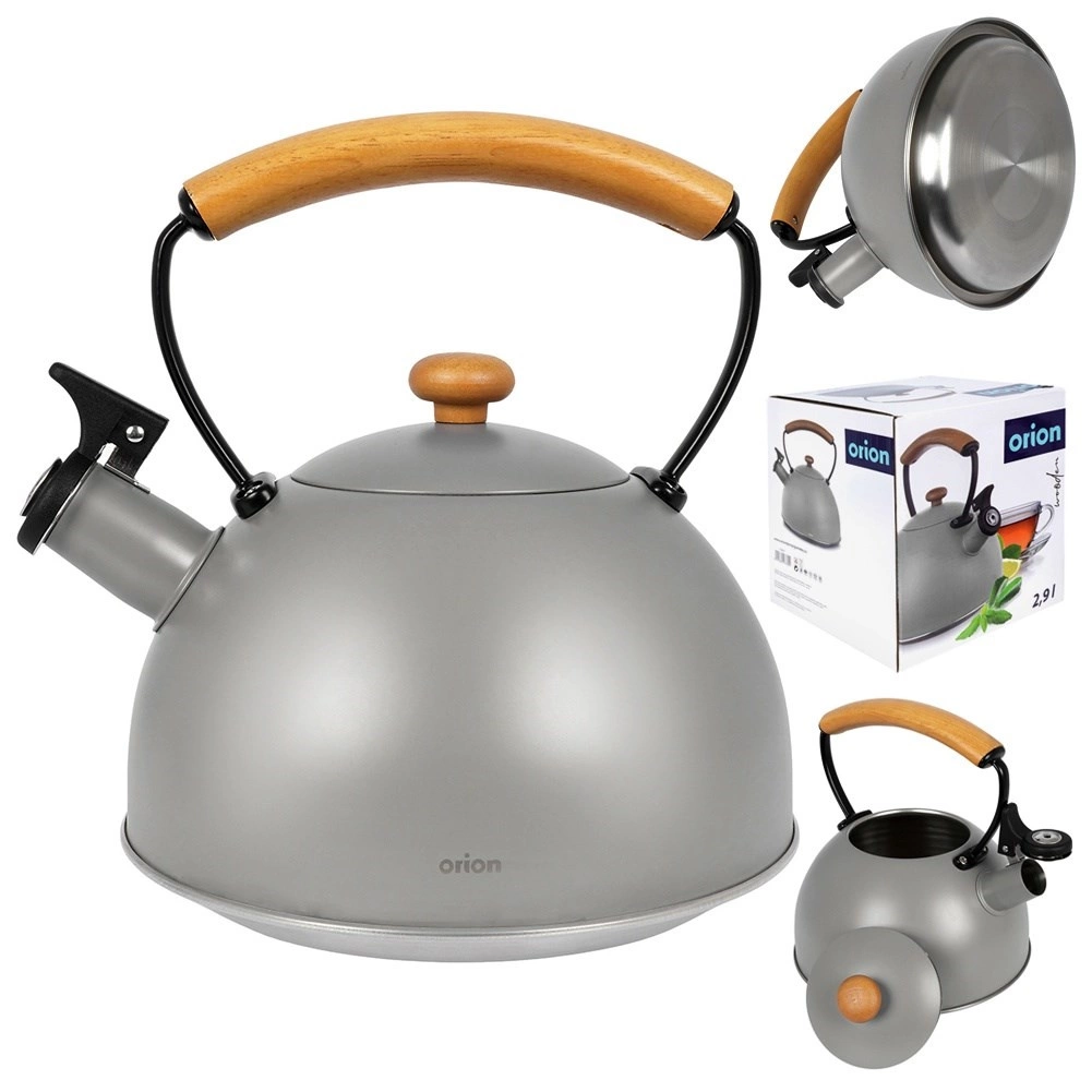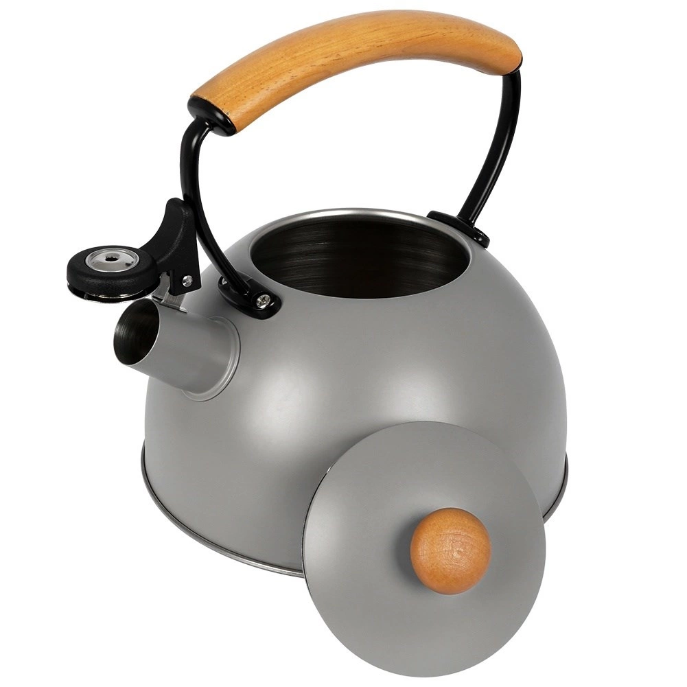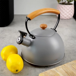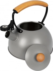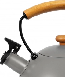 Razkošna nerjavna čajnika v sivem izvedbenem slogu z lesenimi dodatki iz kavčukovca je idealna za hitro zavretje vode za kavo, čaj ali zelišča. Zahvaljujoč ergonomskemu lesenemu ročaju in preklopni piščalki je rokovanje varno in udobno. Čajnika je energijsko varčna in nerjaveče jeklo ne spreminja okusa vode.