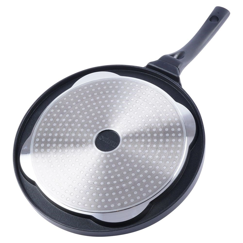 Aluminijasto telo in indukcijsko dno zagotavljata učinkovit prenos toplote, prihranek energije in uporabo na vseh vrstah štedilnikov, vključno z indukcijo.