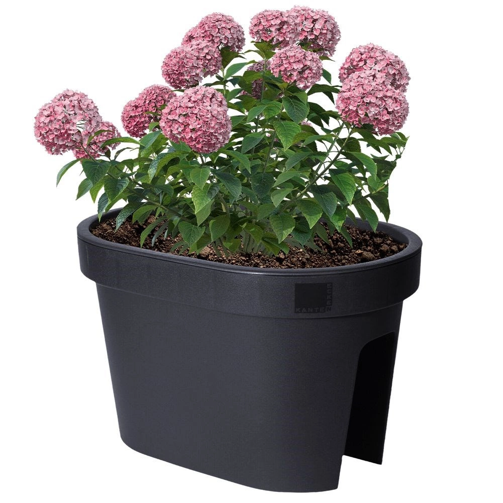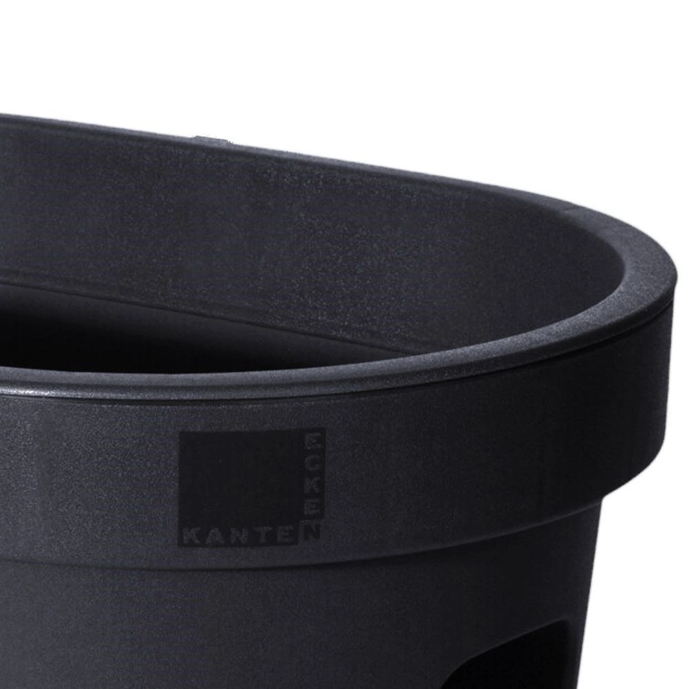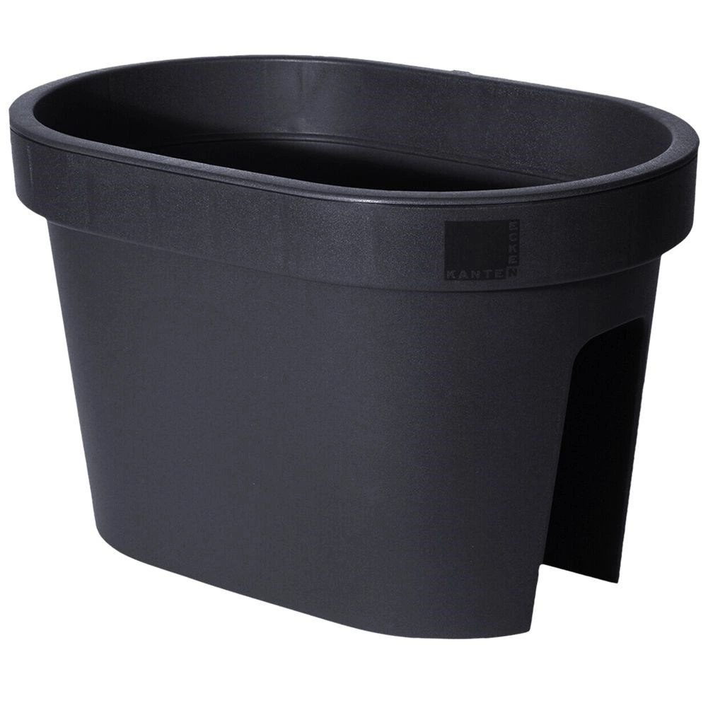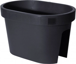 Viseč lonček s centralnim izrezom za varno namestitev na ograjo omogoča gojenje rastlin tudi na majhnem prostoru. Sodobna črna izvedba izstopa na balkonu, terasi in na vrtu ter zasaditvi doda čist, eleganten videz.