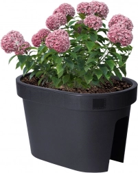 Material je lahek, a zelo trden, odporen na dež, veter in UV-sevanje. Zato lonček dolgoročno ohranja obliko in barvo. Montaža je stvar trenutka – dovolj je, da ga namestite preko ograje (najv. premer/širina 6 cm) in lahko začnete saditi.