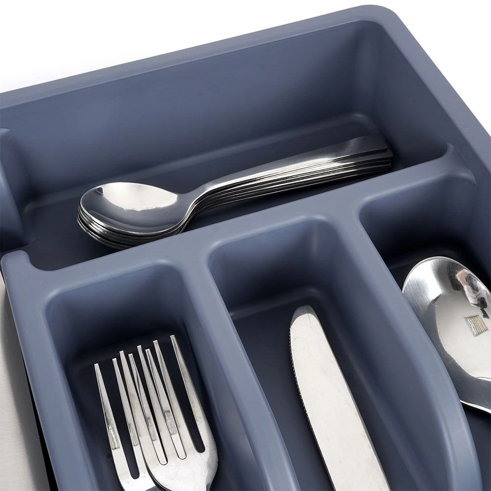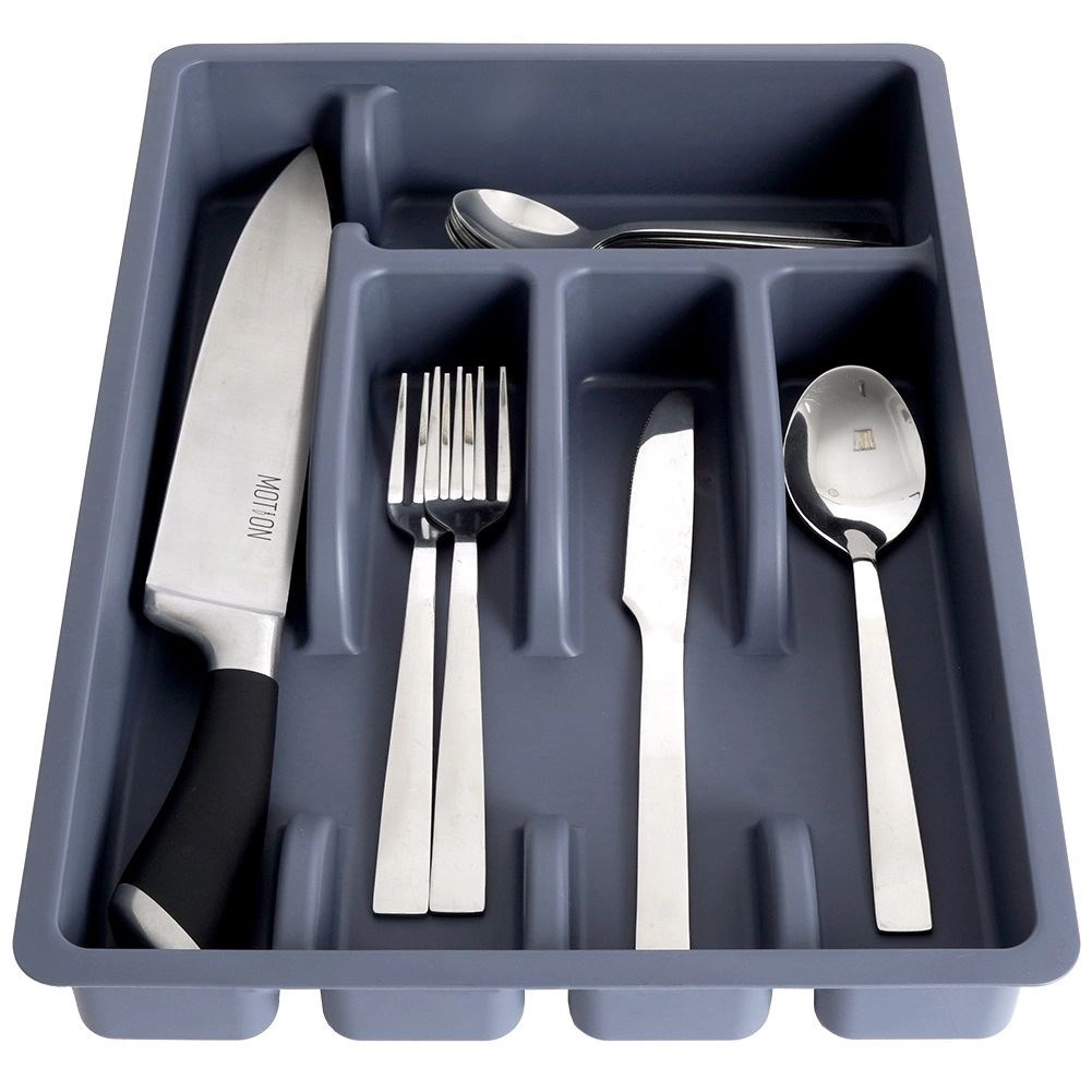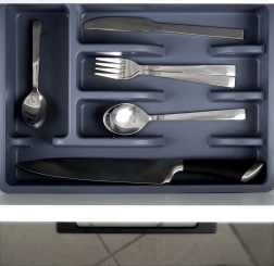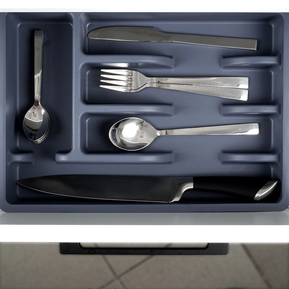 Organizator je izdelan iz kakovostne, vzdržljive plastike v moderni sivi barvi, zato je enostaven za vzdrževanje in dolgoročno trpežen. Notranje pregrade preprečujejo premikanje pribora pri odpiranju predala, kar poveča udobje pri vsakodnevni uporabi.