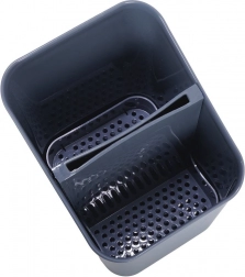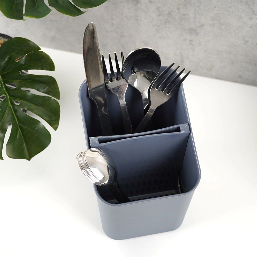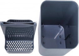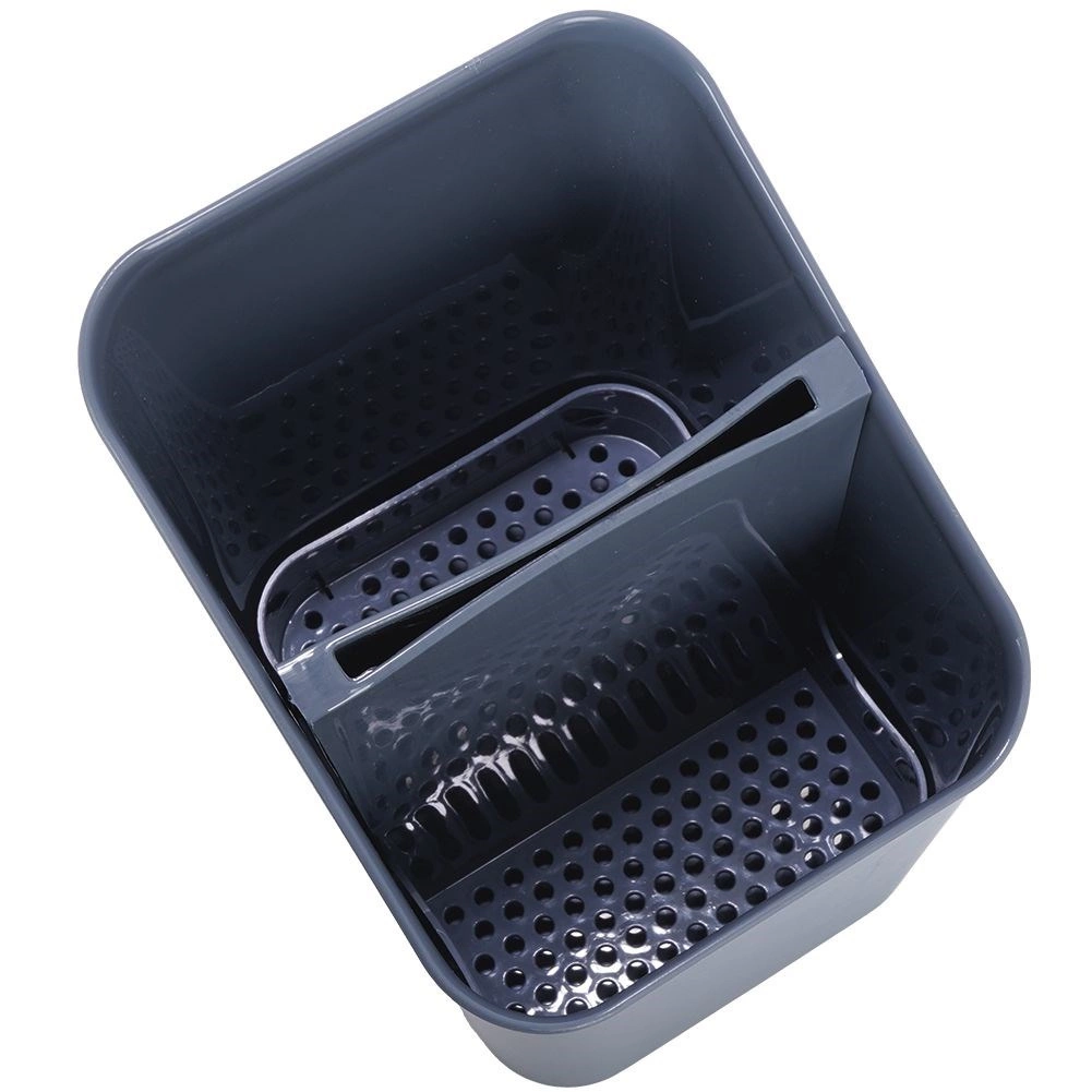 Ohranite kuhinjsko korito in delovno površino urejena. Ta siv odkapnik za pribor združuje trpežno izvedbo iz kakovostne plastike s pametno notranjo razporeditvijo. Odstranljiv vloženi separator ustvari dve praktični coni, zahvaljujoč odtočnim odprtinam pa voda odteka, zato pribor ne stoji v vodi in se hitreje suši.