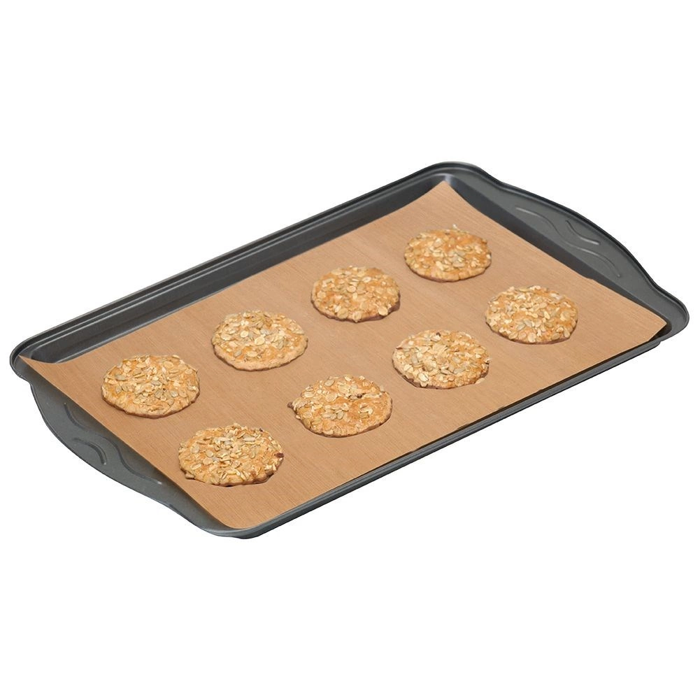 Ta teflonska pekaška folija nudi 100% neprijemljivo površino brez potrebe po maščenju. Je fleksibilna, lahko jo natančno obrežete po pekaču ali rešetki in je po umivanju ponovno pripravljena za uporabo. V primerjavi z enkratnim peki papirjem občutno znižuje stroške peke.