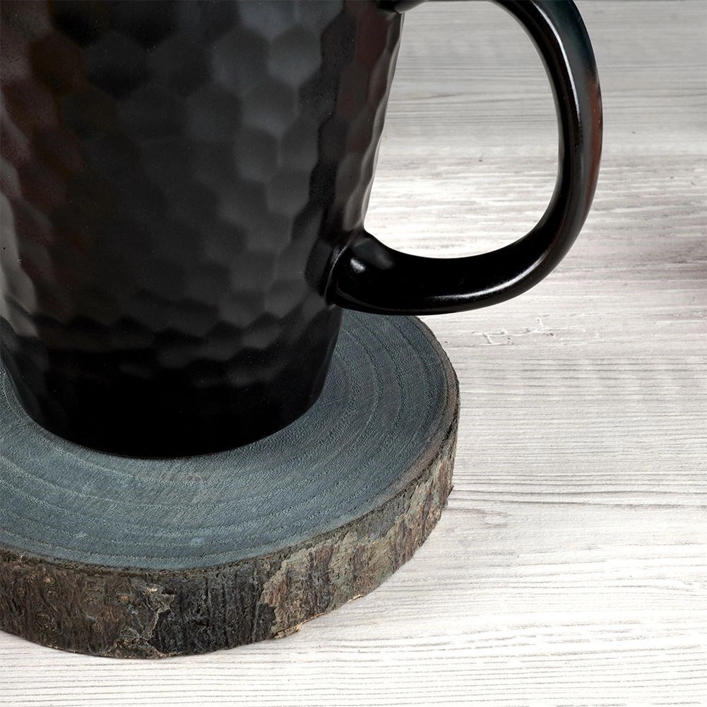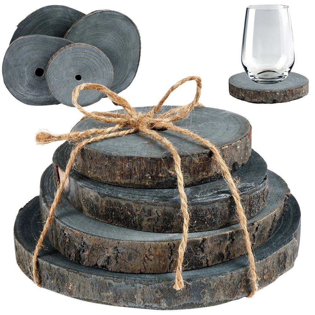 Vsaka rezina ima ohranjeno skorjo in vidne letnice, ki pogrnjeni mizi dodajo avtentičen, naraven značaj.
