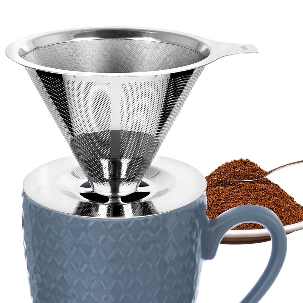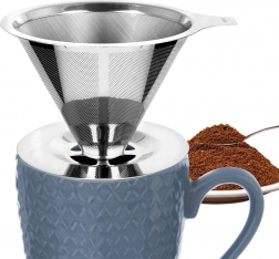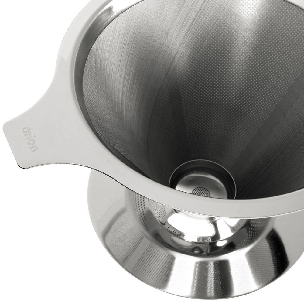 Odkrijte preprostost ročne priprave kave z nerjavno jeklenim filtrom ORION. Zahvaljujoč fini nerjavni mrežici boste uživali v polnem okusu in aromi brez papirnatega priokusa in nepotrebnih odpadkov. Filter preprosto postavite na skodelico ali vrček, nasujte mleto kavo in počasi prelijte z vročo vodo.