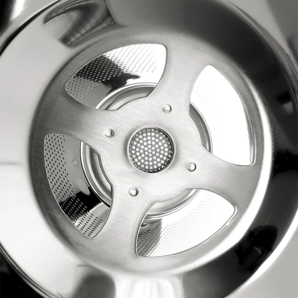 Celokovinska zasnova iz kakovostnega nerjavnega jekla je trpežna, higienska in primerna za pomivalni stroj.