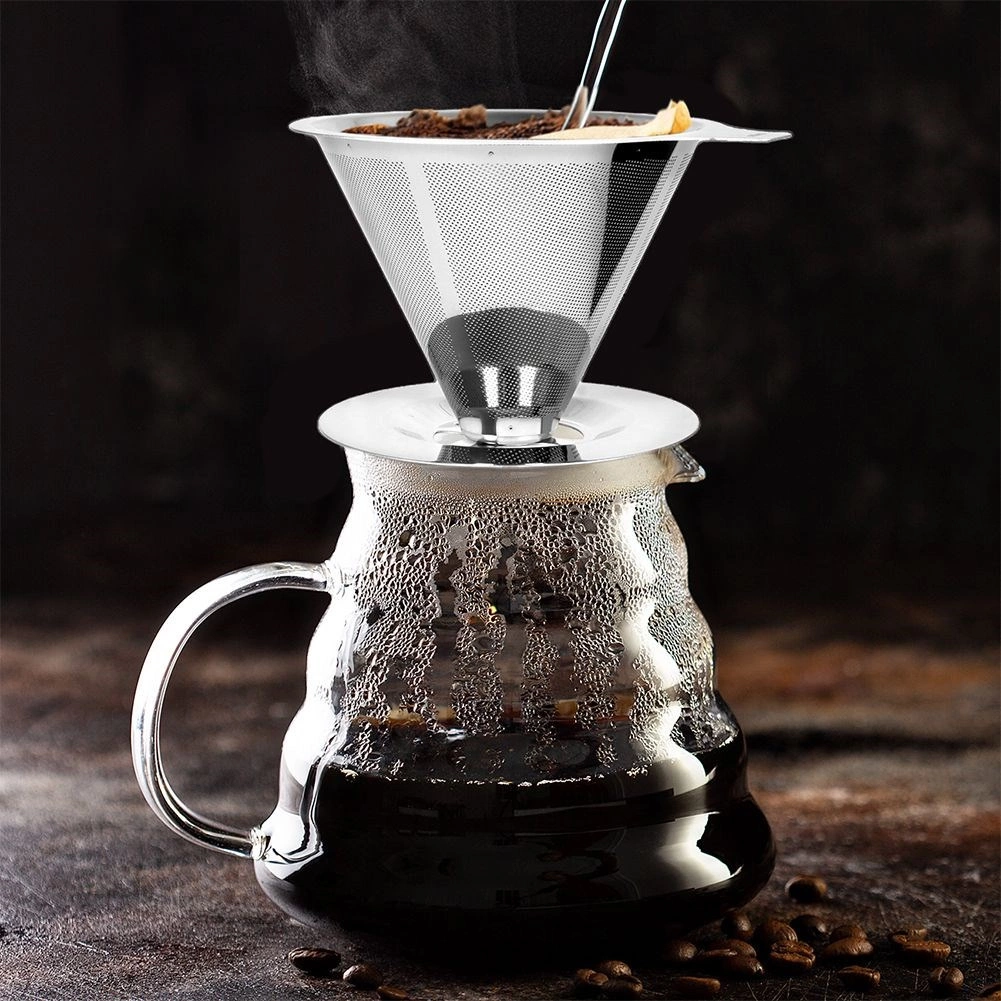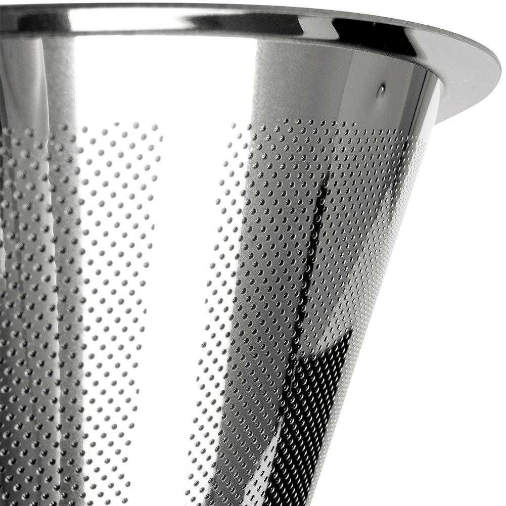 Fina nerjavna mrežica prepusti polno aromo in olja iz kave, hkrati pa zadrži usedlino – brez papirnatega priokusa.