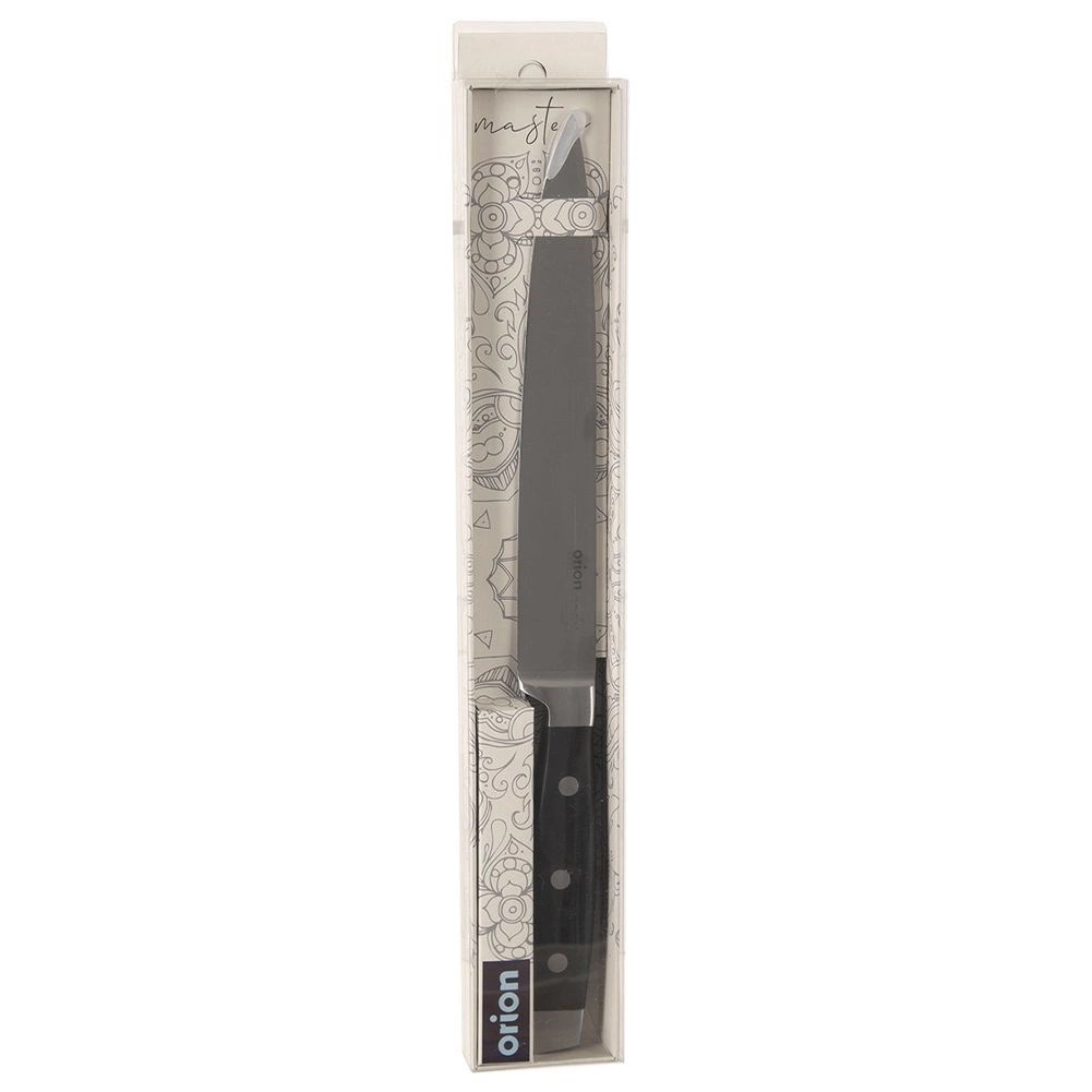 Primeren za rezanje mesa, vključno s tršimi kosi, zelenjave, sadjа in za običajna kuhinjska opravila. Izdelek ustreza evropskim standardom in prihaja od priznane znamke ORION. Za ohranitev ostrine priporočamo nežno ročno pomivanje in skrbno sušenje.