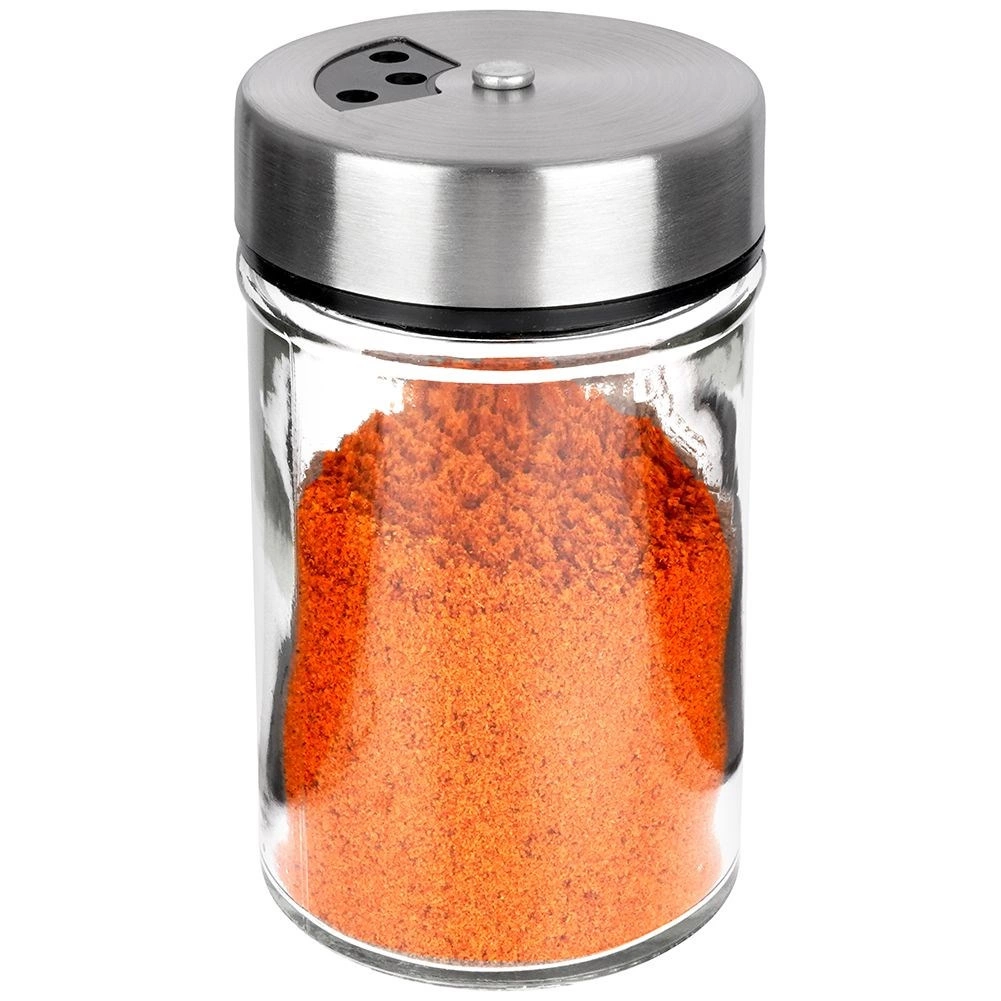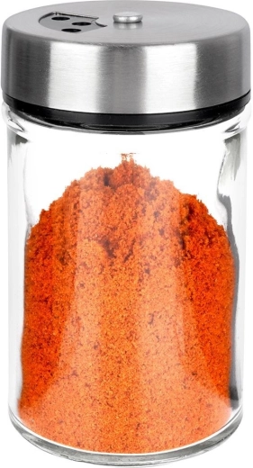 Elegantna začimbnica iz prozornega stekla z nerjavečim pokrovčkom in plastičnim dozirnikom je idealna za vsakodnevno uporabo v kuhinji. Zahvaljujoč dvema velikostma odprtin zlahka prilagodite fino ali grobejše posipanje in vedno nasujete natančno toliko, kolikor potrebujete. Zapiralni mehanizem ohrani začimbe dlje časa dišeče in sveže.