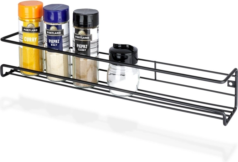 Ta črna kovinska stenska polica je idealna za pregledno shranjevanje začimb, odlično pa služi tudi za kozmetiko v kopalnici, manjše dekoracije, okvirje ali spominke v dnevni sobi. Minimalističen industrijski dizajn (LOFT) se zlahka kombinira z različnimi stili interierja.