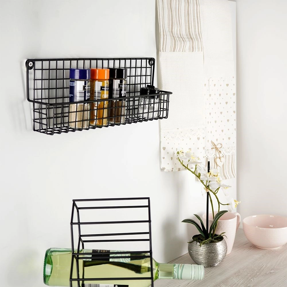 Ta črna kovinska polica za začimbe pomaga pametno izkoristiti vertikalni prostor in ohranja vaše začimbe, kozmetiko ali drobnarije vedno pregledno pri roki. Minimalistični žični dizajn v industrijskem LOFT slogu se poda tako modernim kot klasičnim interierjem.