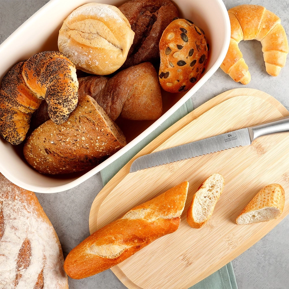 Ovalna posoda omejuje dostop zraka in pomaga ohraniti kruh ter pecivo dlje mehko in okusno.