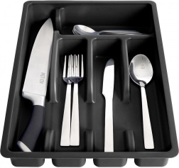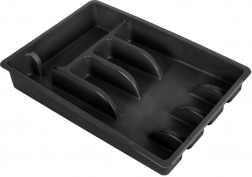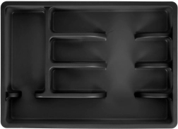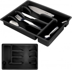Izdelan iz kakovostne, trpežne plastike v elegantni črni barvi. Material je gladek, higieničen in preprosto za čiščenje – zadostuje vlažna krpa ali pomivalni stroj. Zaradi univerzalnih mer se prilega večini predalov in takoj spremeni nered v pregledno shrambo.