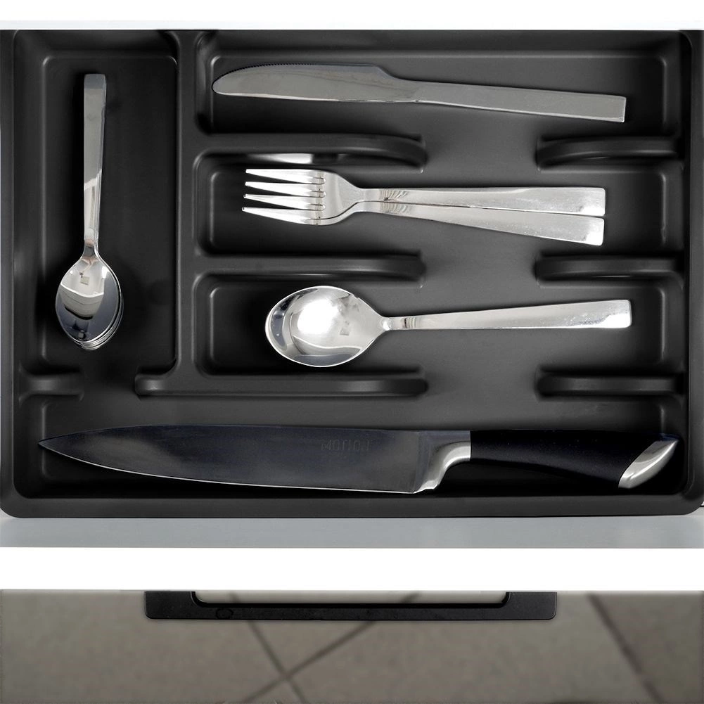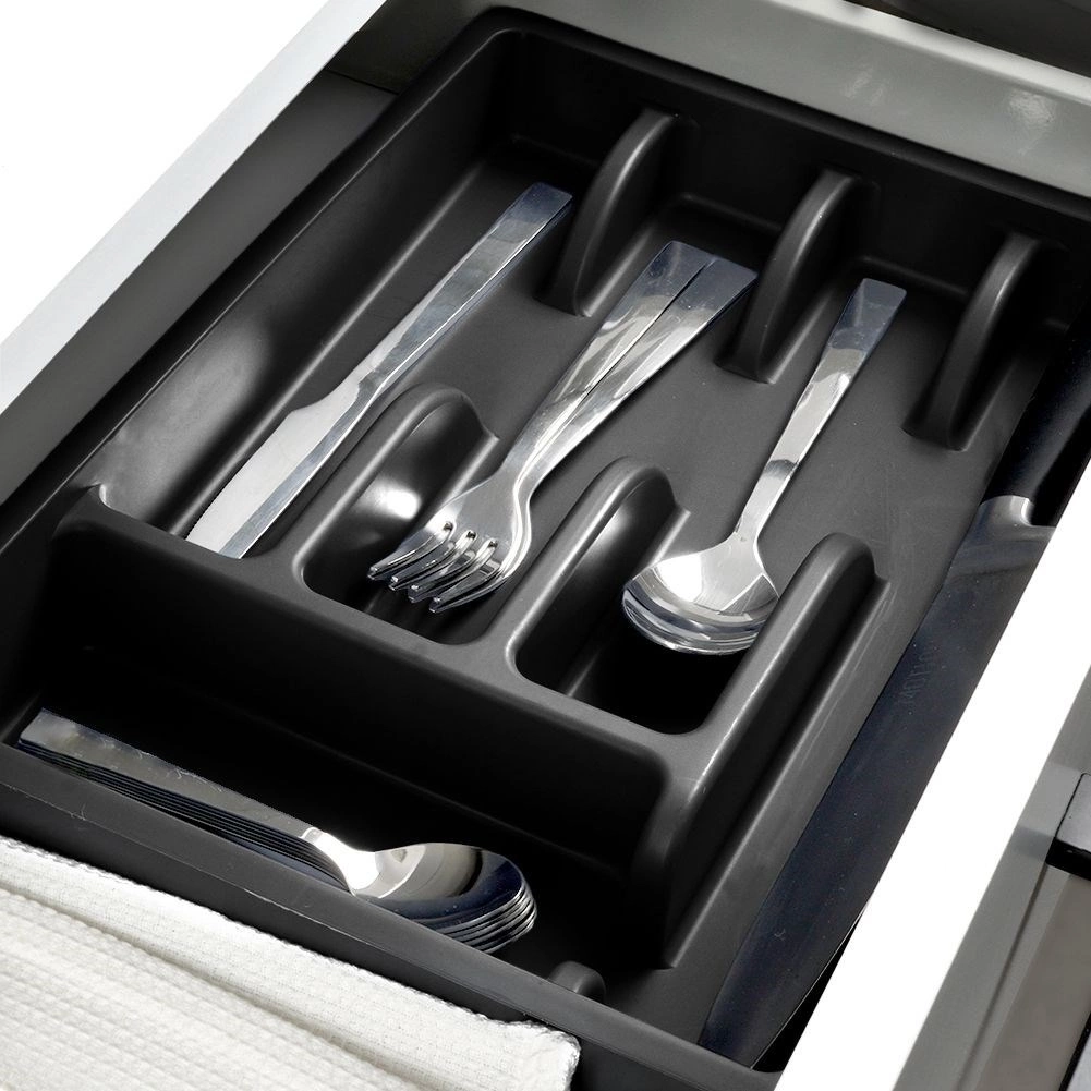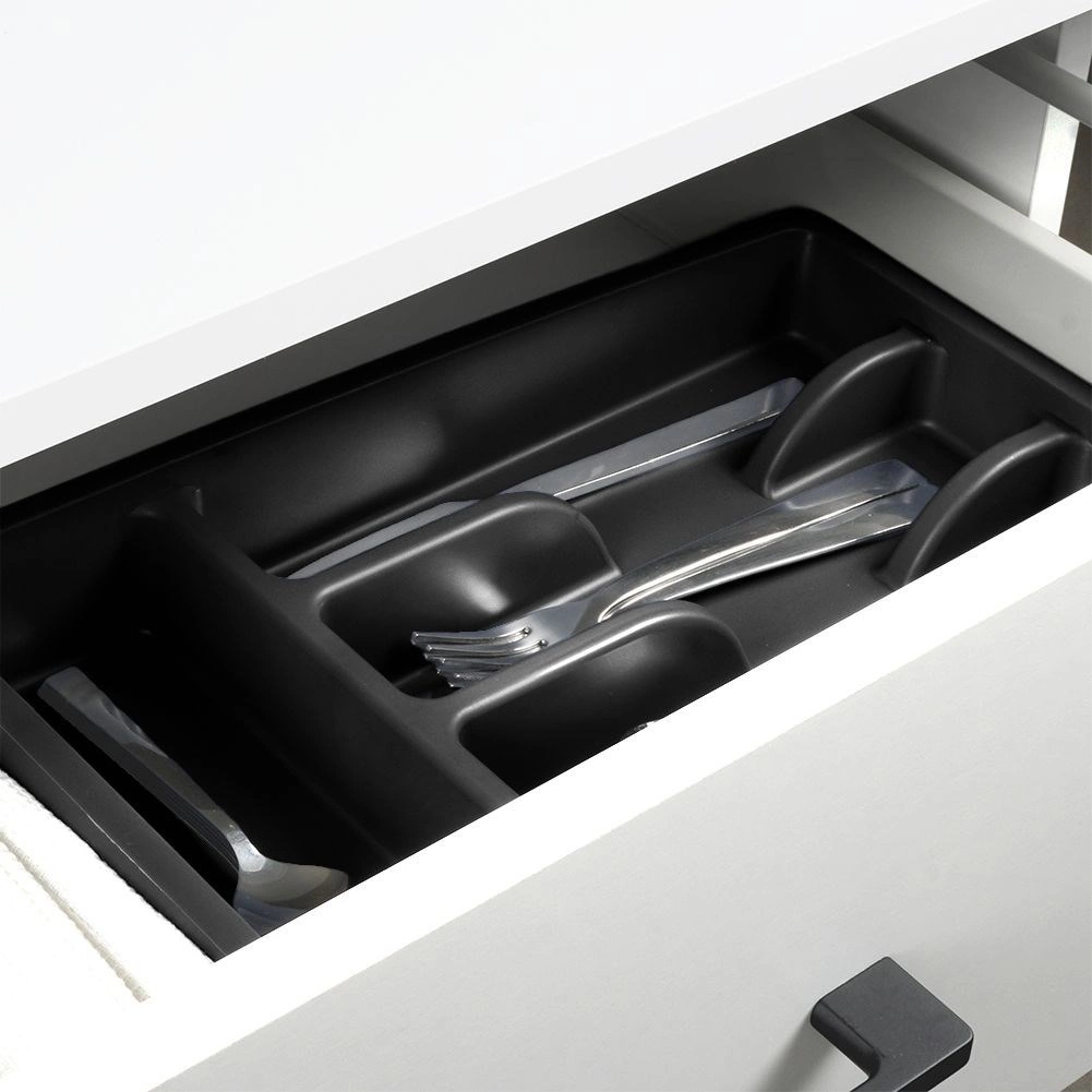 Tri cone za jedilni pribor, ločen predalček za žličke in dolg predel za kuhinjske pripomočke poskrbijo, da je vse na svojem mestu.