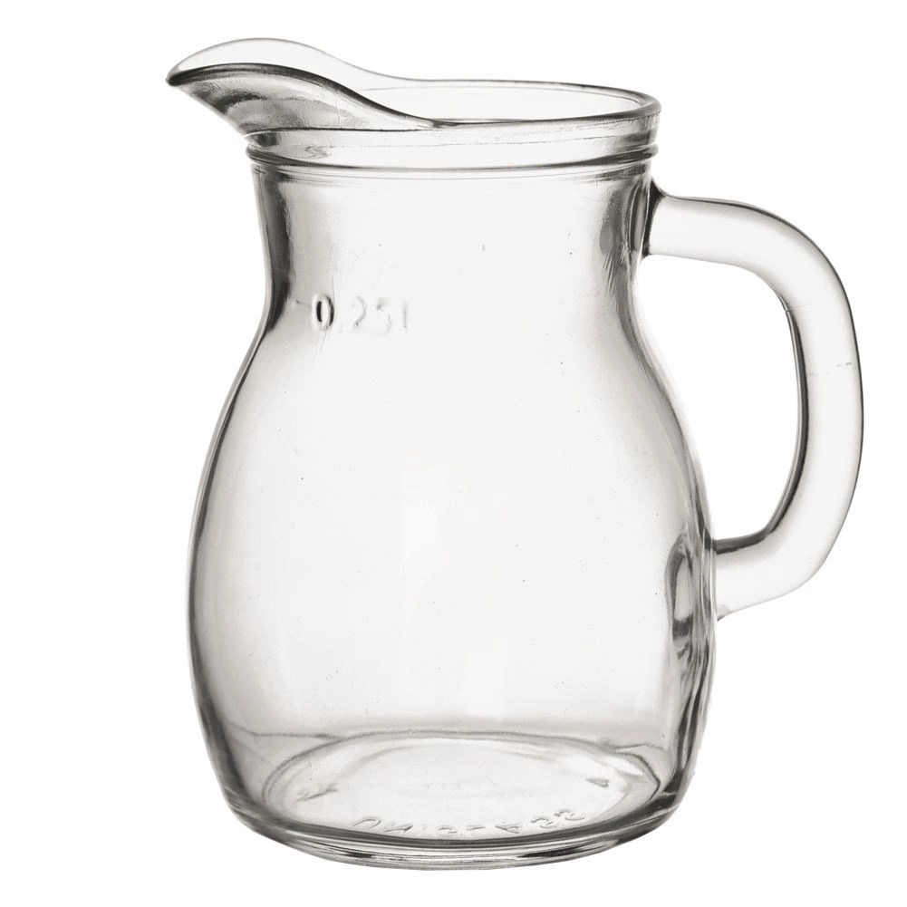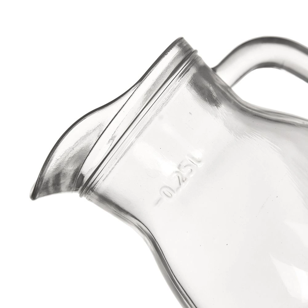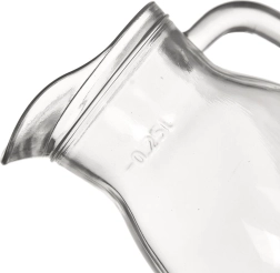 Univerzalni steklen vrček je odličen za kuhinjo in gostinske obrate. Zaradi prozorne izvedbe se elegantno poda k vsakemu pogrinjku in omogoča enostaven nadzor količine napitka. Praktična ozanka 0,25 l olajša natančno serviranje.