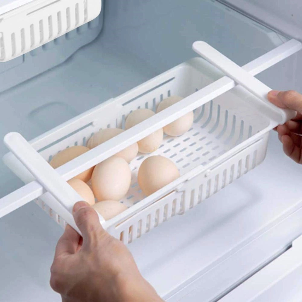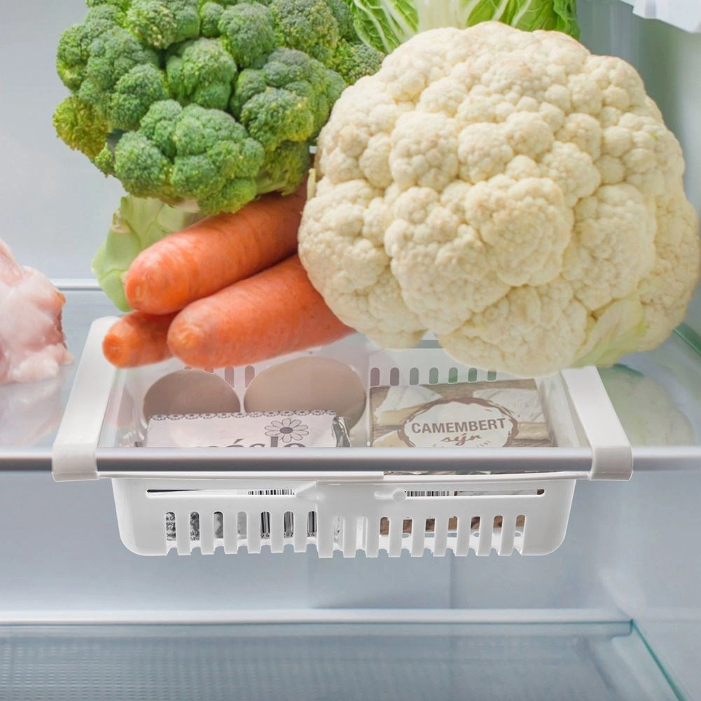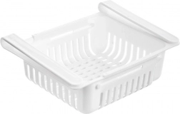 Praktična viseča košarica za hladilnik, razširljiva z 21 na 28,7 cm, vam pomaga pametno izkoristiti prostor pod polico. Je lahka, trpežna in enostavna za montažo brez orodja. Zahvaljujoč zračeni zasnovi živila ostanejo dlje časa sveža, vse pa imate pregledno pri roki. Raztegljiva dolžina, enostavna montaža pod polico, čvrsta izvedba in prezračevalne odprtine za boljšo kroženje zraka.