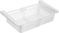 Maksimirajte prostor v hladilniku z visečo košarico, ki jo preprosto nasunete pod stekleno polico in takoj ustvarite dodatni prostor za shranjevanje. Zahvaljujoč tekoči regulaciji dolžine 21–28,7 cm se zlahka prilagodi različnim širinam polic in vrstam shranjenih živil.