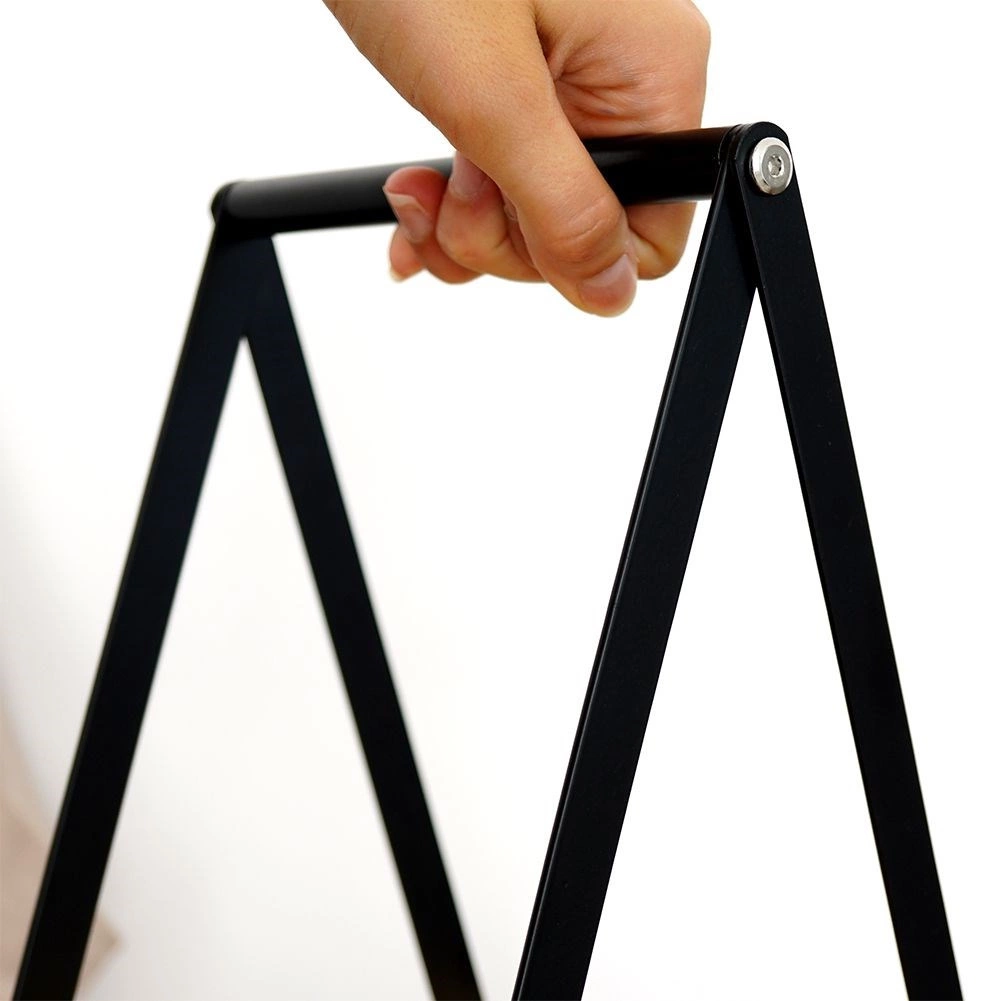 Črn kovinski A‑okvir zagotavlja odlično stabilnost, zgornji ročaj pa omogoča, da stojalo zlahka prenesete iz kuhinje naravnost na mizo.