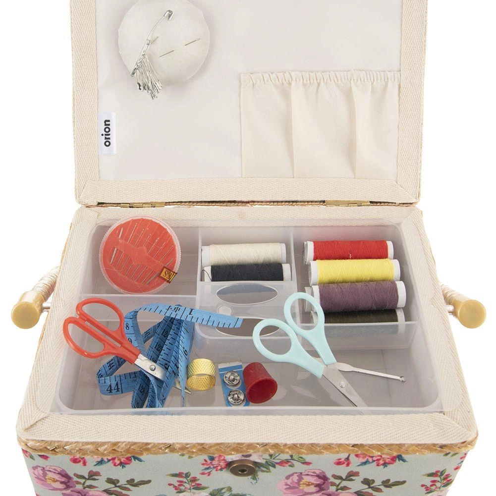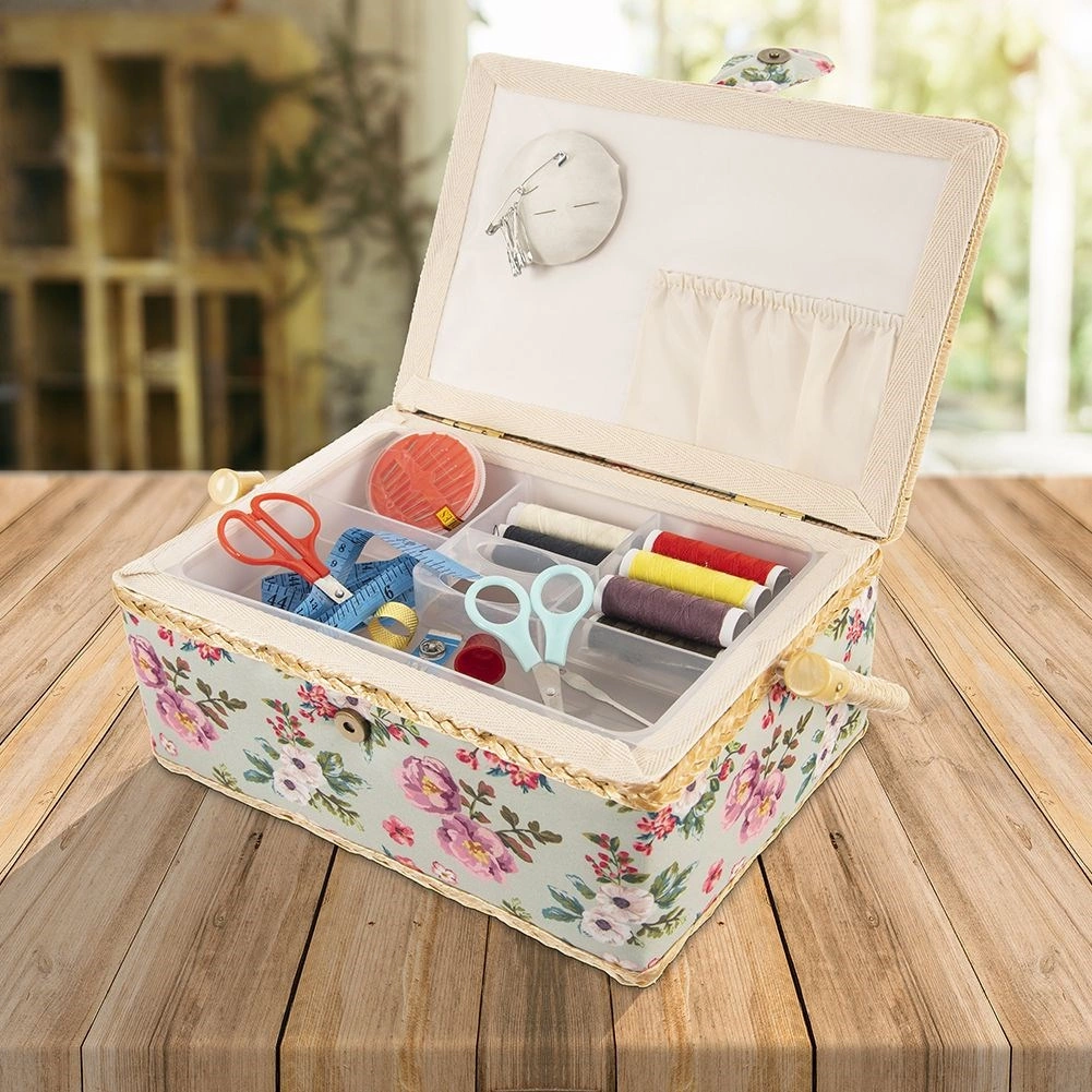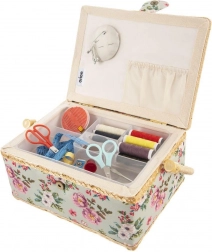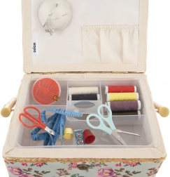 Ta stilska škatla za šivalne pripomočke je idealna rešitev za vsakogar, ki želi imeti šivalne potrebščine vedno pri roki in popolno organizirane. Zaradi cvetličnega motiva in trdne izdelave deluje dekorativno, hkrati pa je maksimalno funkcionalna. Primerna tudi kot organizator za bižuterijo in drobne ustvarjalne pripomočke.