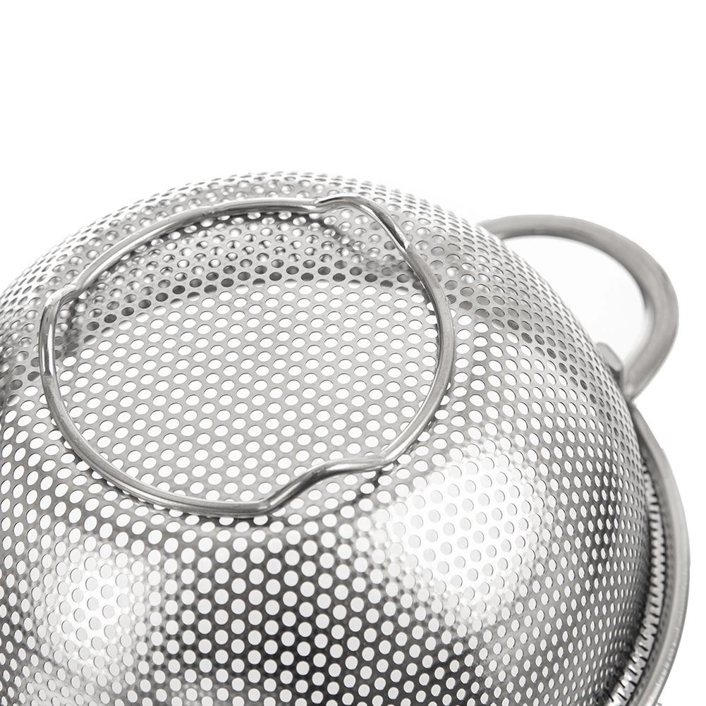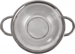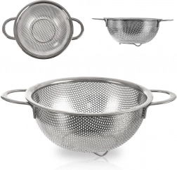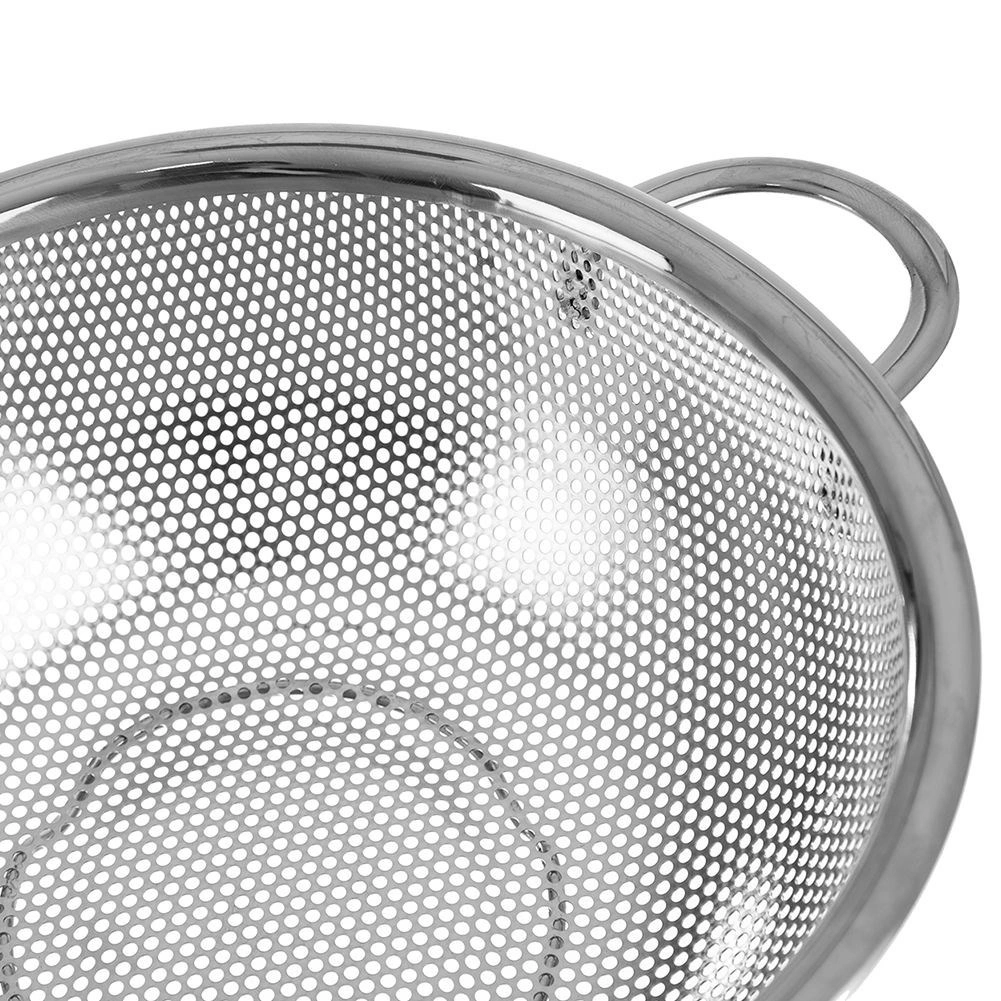 Praktično cedilo iz kakovostnega nerjavnega jekla v elegantni srebrni izvedbi bo postalo nepogrešljiv pomočnik v vsaki kuhinji. Fino perforirana skleda omogoča hitro in enakomerno odtekanje vode pri izpiranju sadja in zelenjave ali pri cejenju testenin, cmokov in riža. Dva stranska ročaja zagotavljata varen oprijem in enostavno prenašanje.