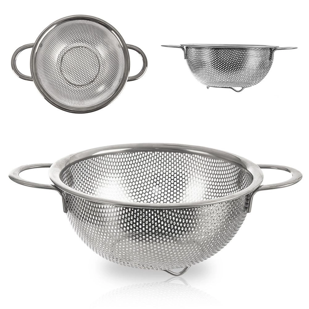 Dva robustna stranska ročaja omogočata enostavno dvigovanje, prenašanje in stresanje cedila brez tveganja, da bi zdrsnilo.