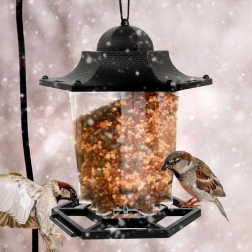 Široka osnova s pristajališči pticam nudi stabilnost in dovolj prostora med hranjenjem. Idealno za sinice, vrabce in druge manjše vrste.