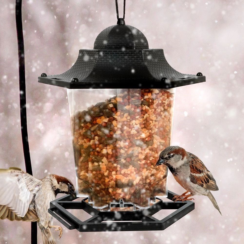 Stilska in funkcionalna krmilnica za prostoživeče ptice, ki se odlično poda v vsak vrt, na teraso ali balkon. Prozorno telo omogoča takojšen nadzor nivoja semen, medtem ko širša podstavek pticam nudi udobno pristajanje pri hranjenju. Strešica ščiti krmo pred dežjem in snegom, zato je krmilnica idealna za zimsko prikrmljevanje in poletno opazovanje pernatih obiskovalcev.