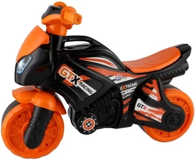 Otroški poganjalec motor v športnem dizajnu bo razveselil vse male ljubitelje hitre vožnje. Zaradi trpežne plastične konstrukcije je idealen za zabavno in varno igranje. Dizajn je pretežno oranžno-črne barve z logotipi GTX Racing, ki dajejo občutek pravega dirkalnega motorja.