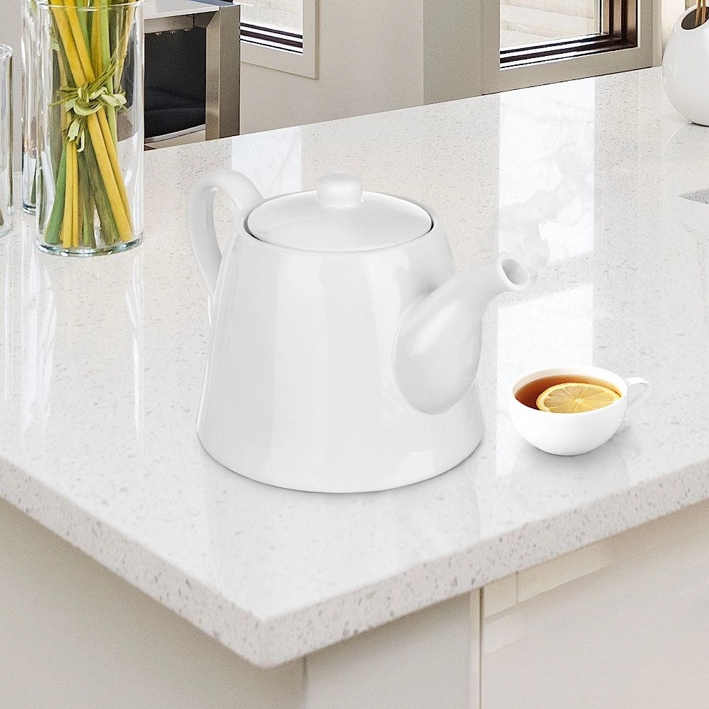 Priljubljen in praktičen vrč iz belega porcelana odlično dopolni vaš jedilni servis in omogoča pripravo večje količine najljubše pijače za družino in goste. Zahvaljujoč čvrstemu ročaju in ergonomskemu izlivalniku je točenje tekoče in brez kapljanja, dobro prilegajoč pokrov pa pomaga, da pijača dlje ostane topla.
