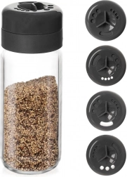 Elegantna začimbnica iz prozornega stekla z vrtljivim pokrovčkom ponuja tri nastavitve: povsem zaprto, povsem odprto in drobne odprtine za nadzorovano posipanje. Transparentno ohišje omogoča, da na prvi pogled vidite vsebino in količino, zato boste svoje najljubše začimbe vedno imeli pri roki.