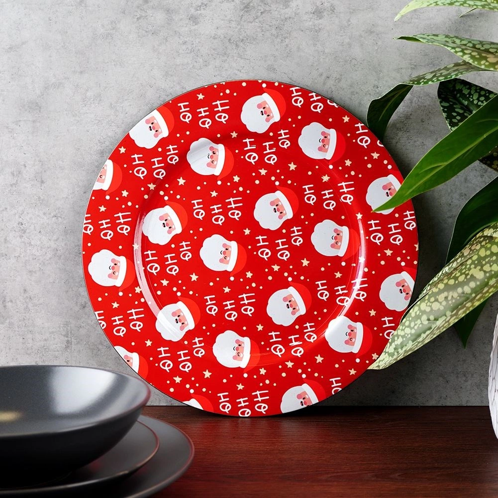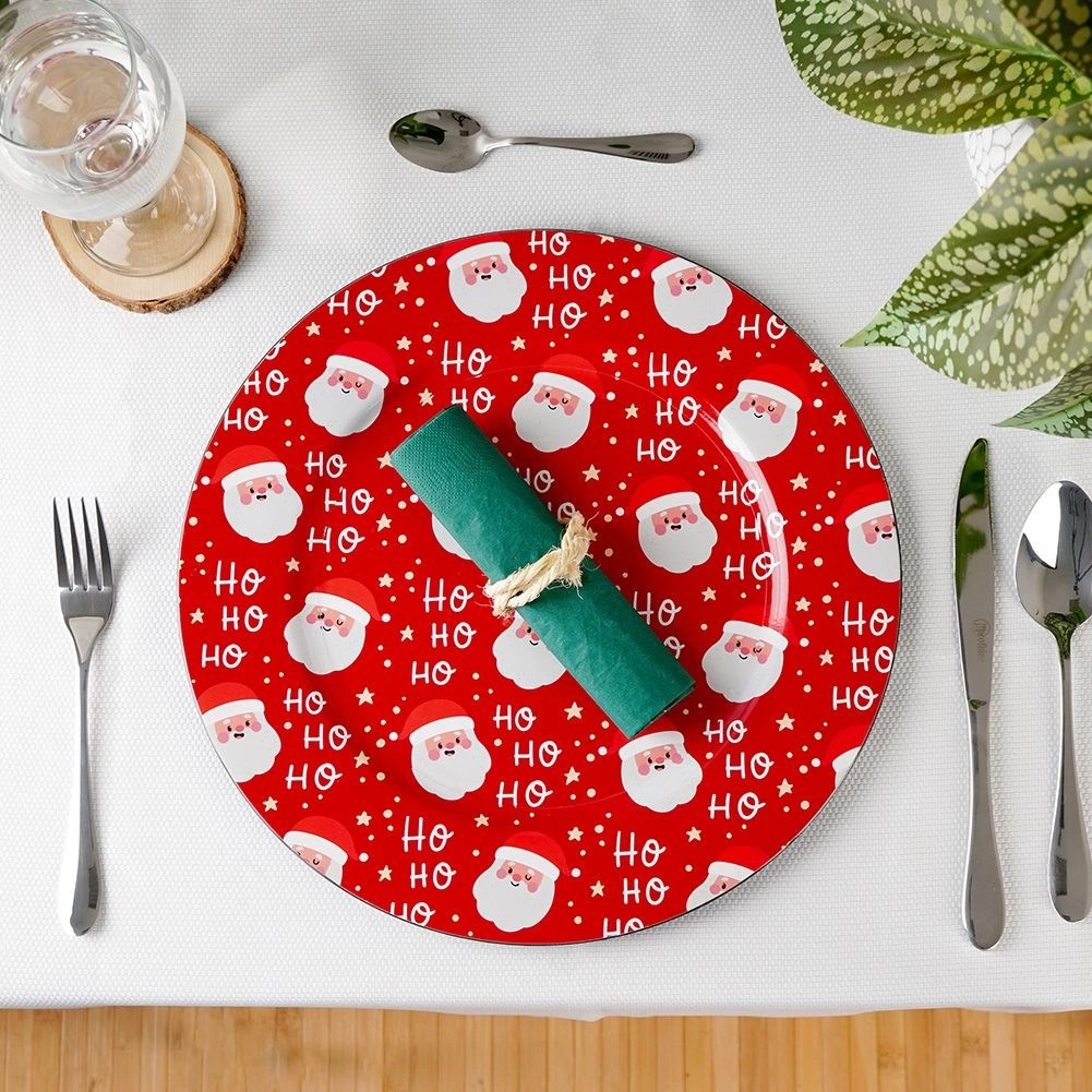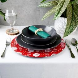 Vnesite na svojo praznično mizo čar božiča z rdečim podstavkom s ponavljajočim se motivom BOŽIČKA in napisi »Ho Ho Ho«. Bleščeča površina in izrazit potisk naredita ta kos odlično osnovo za krožnike in praznične aranžmaje. Idealen je za družinske večerje, božične pogostitve in slavnostne dekoracije.