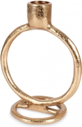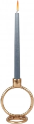 Dizajnerski svečnik iz kakovostnega aluminija v razkošni zlati izvedbi je namenjen za dolge sveče do premera 2 cm. Njegove čiste linije in krožni prstan tvorijo privlačen poudarek, ki ga zlahka uskladite z modernim, skandinavskim ali industrijskim interierjem.