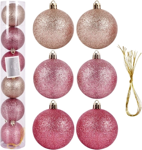 Ta komplet 6 nerazbitnih bunkic v rožnatih tonih je idealen za moderno in tradicionalno božično okrasitev. Bleščeča površina lepo odbija svetlobo, zato bo vaše drevo in praznični aranžma dobil edinstven, žareč učinek. Bunkice so lahke, varne in primerne za domove z otroki in ljubljenčki.