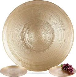Sodoben steklen krožnik v modni zlati barvi je odlična izbira za vsakodnevno obedovanje in praznične pogostitve. Zaradi trdnega stekla in brezčasnega videza se odlično ujema z različnimi vrstami pogrinjkov ter mizi doda eleganten pridih.
