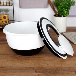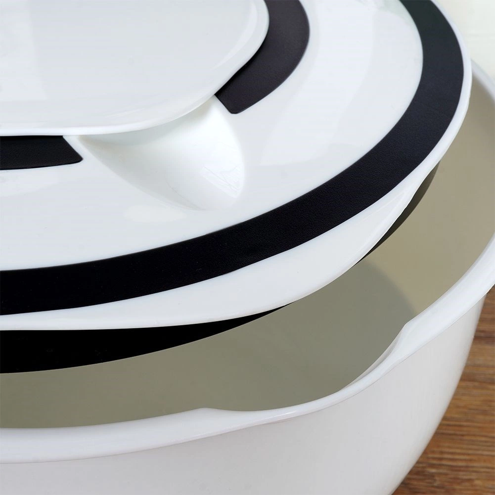 Skleda je izdelana iz varnih materialov za stik z živili, odpornih na temperature od -30 °C do +80 °C. Enostavno vzdrževanje zagotavlja možnost pomivanja v pomivalnem stroju. Elegantna bela izvedba s črnimi poudarki se poda v vsako kuhinjo.