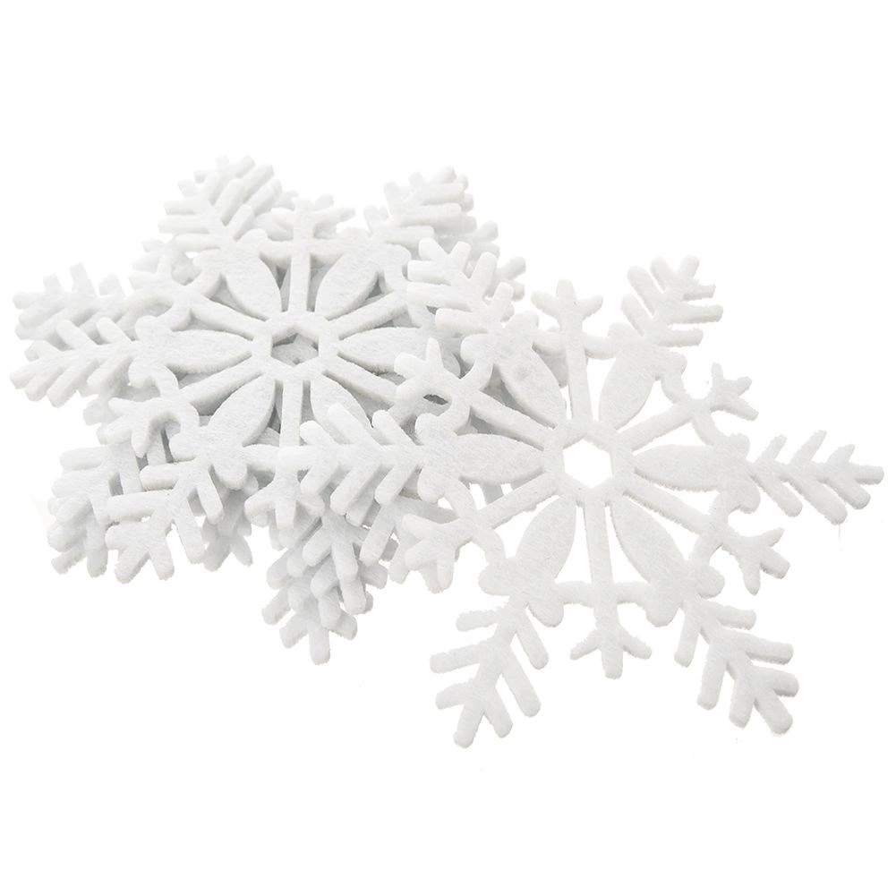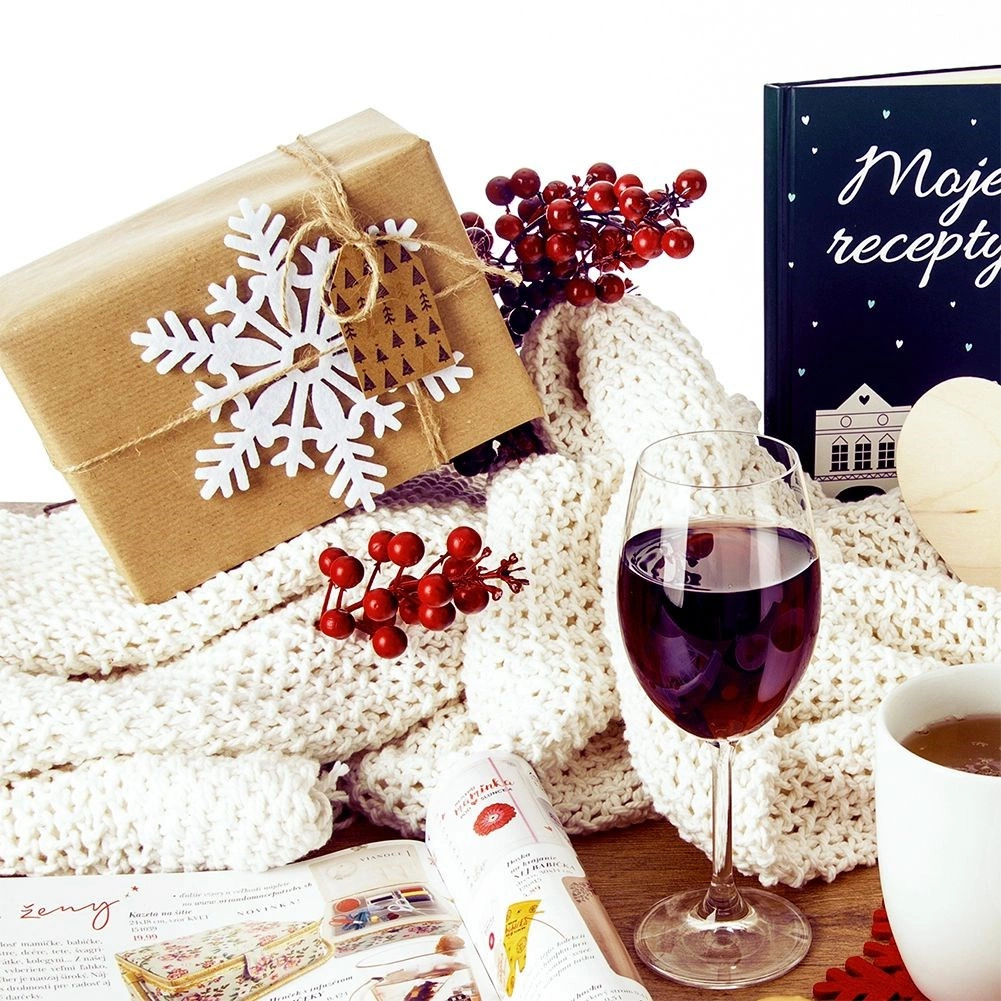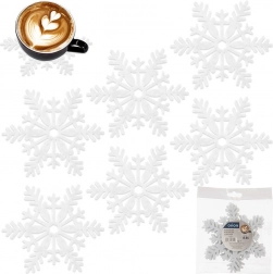 Stilski beli podstavki iz debelega filca zanesljivo ščitijo površino mize pred toploto, vlago in praskami. Zimski motiv snežink takoj ustvari praznično razpoloženje in polepša vsak interier. Podstavki so enostavni za shranjevanje, lahki in prijetni na otip.