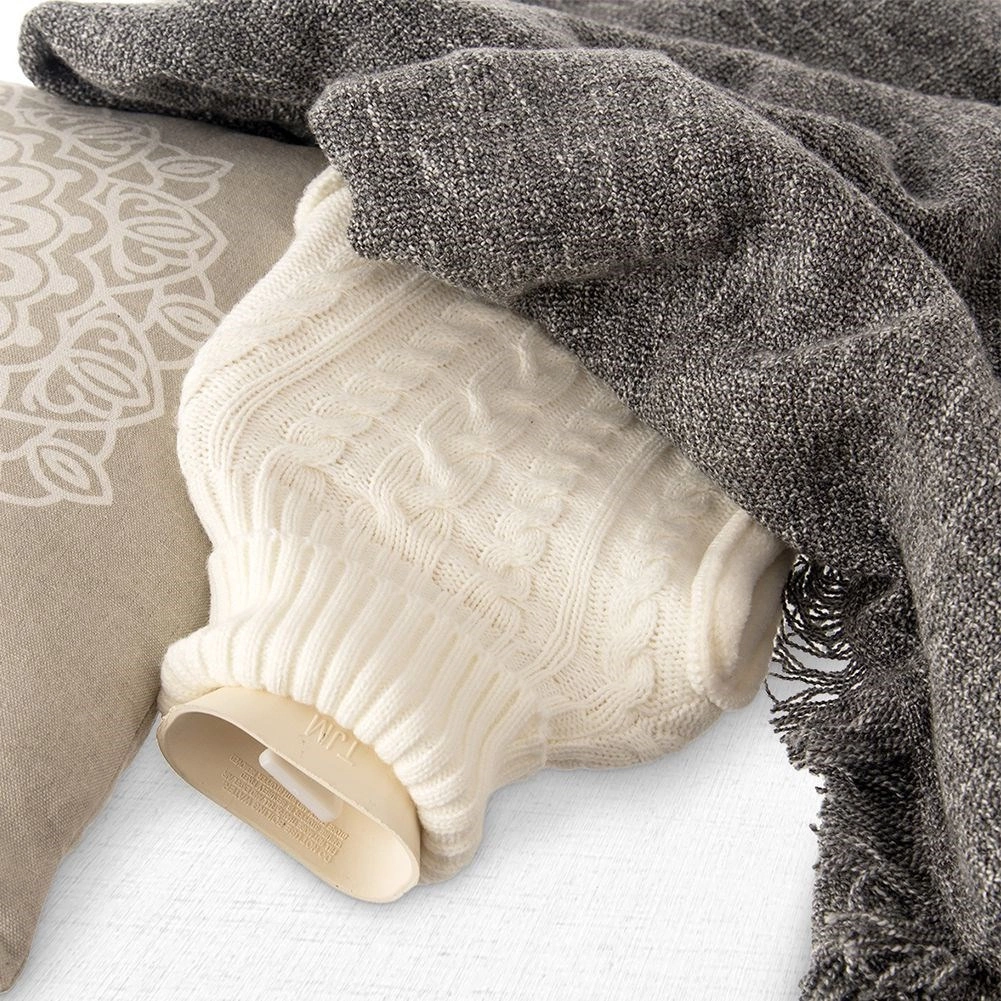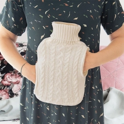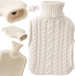 Eleganten termofor z ovitkom, ki spominja na pulover z ovratnikom, je idealen za ogrevanje postelje, sprostitev mišične napetosti in umiritev krčev. Po polnjenju s toplo vodo nudi prijetno sevalno toploto, s hladno vodo pa služi kot hladilni obkladek za znižanje temperature in umiritev oteklin ali pikov.