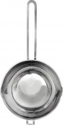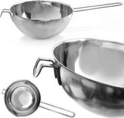 Ta nerjaveča posoda za vodno kopel je zasnovana za natančno in nežno segrevanje sestavin brez tveganja prismod. Odlično se prilega domačim slaščičarjem in ljubiteljem ročno izdelanih sveč – uporabljali jo boste za topljenje čokolade, masla in voska. Praktičen dolg ročaj zagotavlja varen oprijem, kaveljček pa omogoča, da posoda trdno sedi na robu lonca.