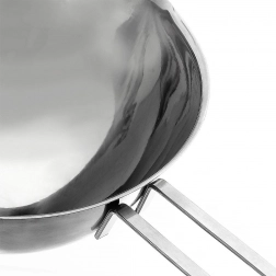 Dolg ročaj odlično sede v roko, stranski kaveljček pa zagotovi stabilnost posode na robu lonca.