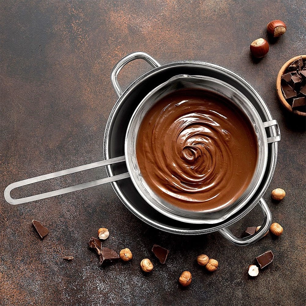 Stopite čokolado, maslo ali vosek enakomerno in brez prismod z robustno nerjavečo posodo, namenjeno vodni kopeli.