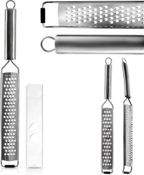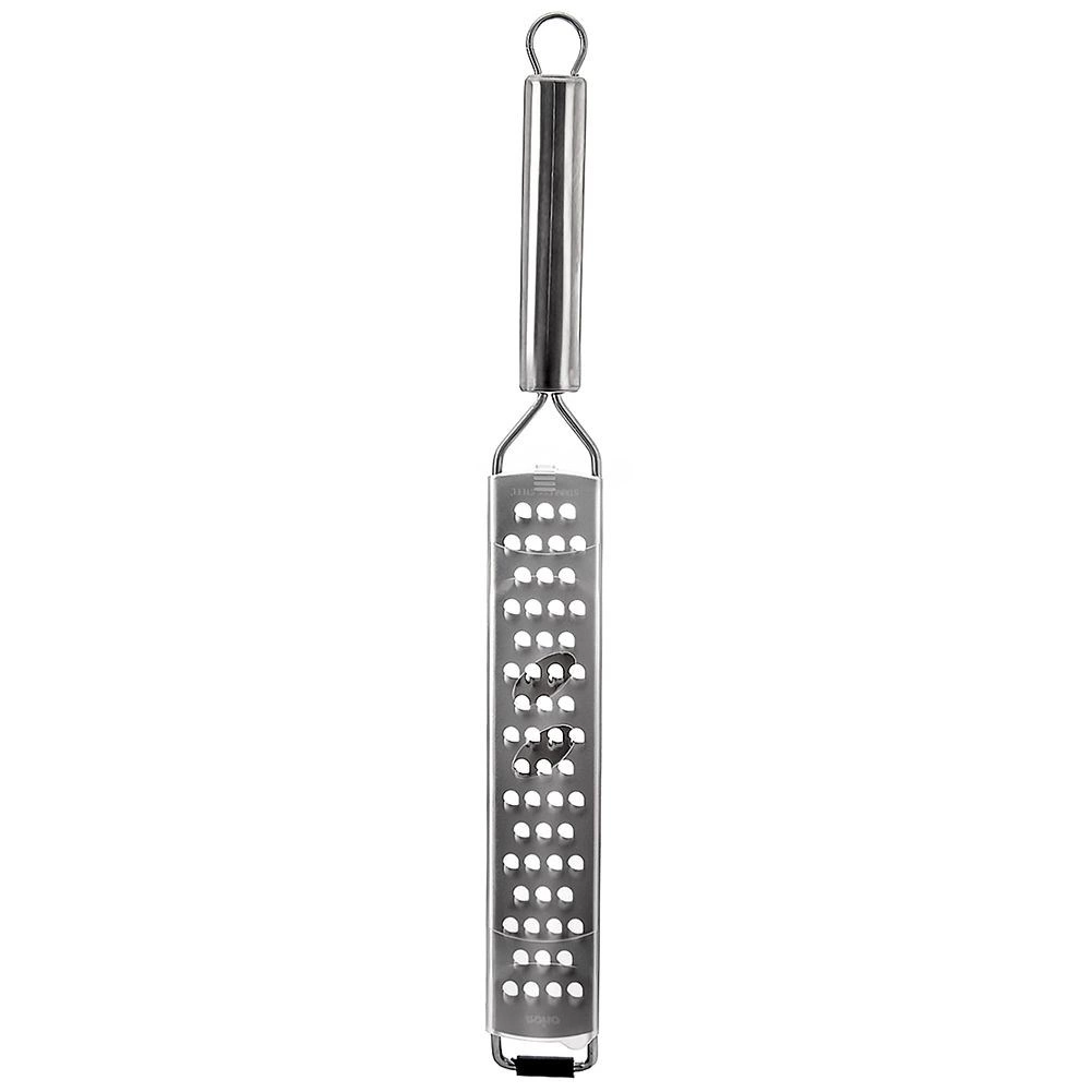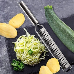 Fine odprtine in kakovostno nerjavno jekleno rezilo zagotavljajo hitre, čiste in enakomerne rezultate pri ribanju sirov, zelenjave in citrusne lupine.