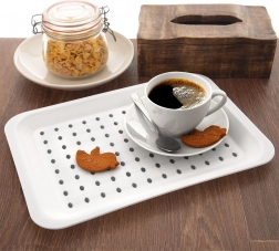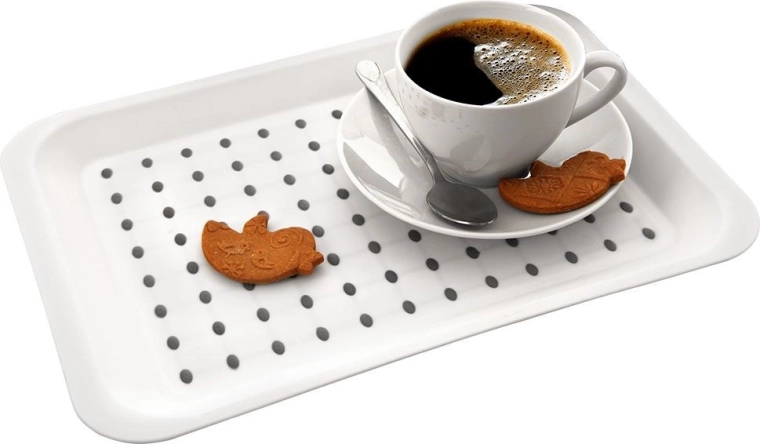 Pladenj je odličen za vsakodnevno uporabo in za postrežbo gostov na zabavah. Je lahek, enostaven za pomivanje in zaradi kakovostne izdelave prenese dolgotrajno uporabo. Univerzalna velikost 33 × 23 cm je popolna za prenašanje pijač, sladic ali zajtrka v posteljo.