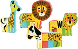 Štiri safari živalice z magnetnimi deli lahko med seboj poljubno kombinirate – popolno za razvoj ustvarjalnosti in domišljije.