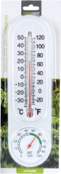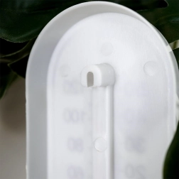 Zaradi univerzalne uporabe je idealen za stanovanje, balkon, teraso, zimski vrt ali zaščiten zunanji prostor. Čitljive oznake in pregledne merilne lestvice olajšajo odčitek tudi z večje razdalje. Lahek in odporen plastičen material zagotavlja dolgo življenjsko dobo in enostavno vzdrževanje.